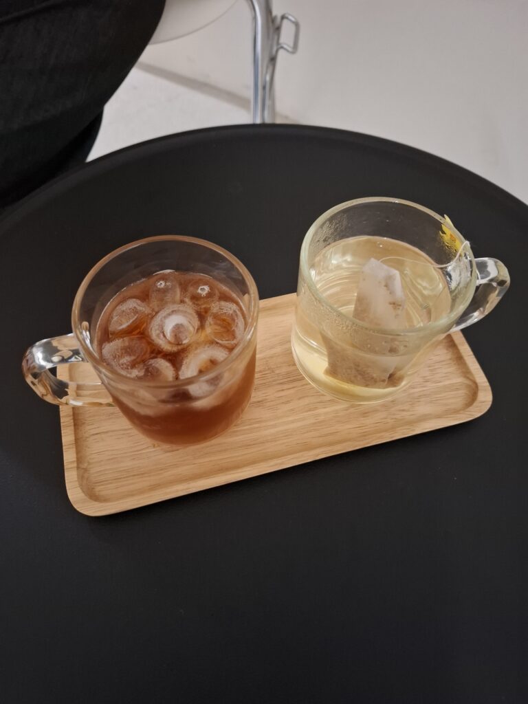 そんなこんなで60分はあっという間に過ぎ、終わったら飲み物は何がいいか聞かれます。私たちはアイスティーとあたたかいお茶をお願いしました。